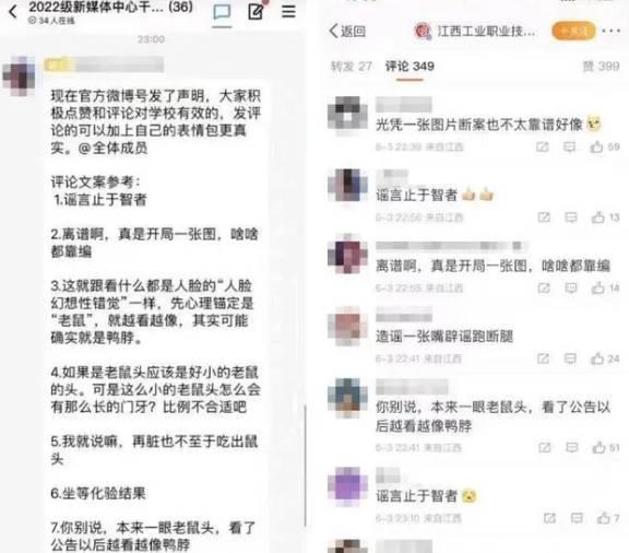 網友認為是老鼠頭這種情況不僅僅是從圖片當中斷定的,而是從其中的兩個細節,涉事高校2021年就曾經有一次老鼠事件的出現,而當時食堂經營公司正是現在這家,事發之后學校新媒體中心組織學生在評論區發布帖子,寫好了統一的文案,該校輔導員也曾經對學生表明禁止發布關于這事件的言論。