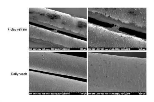 受試者的自我感覺也是試驗其中評估的重要標準,隨著洗頭頻率增加,自我感知到頭皮屑干燥瘙癢的程度,在統計學上會有著較為明顯的降低,每天洗頭的相比于一周不怎么洗頭的人頭皮表面的脂質以及皮脂脂肪酸有著明顯的含量降低。