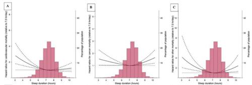 除此之外,研究人員對于各種疾病導致的死亡率和睡眠時間之間存在的關系作出了分析,有著同樣的發現。在相關程度上睡眠時間比7個小時要低或者比8個小時要多,由于癌癥或者心腦血管疾病以及其他的原因最終導致的死亡率都會有較為顯著的上升。