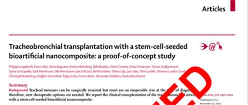 11年前馬基亞里尼在員工氣管移植方面有所成,被稱之為干細胞移植的先驅人士,這手術也被稱之為再生醫學的一大重要突破 很快人們發現其中有9位所接受人工合成氣管移植手術的患者當中,8位患者在4年內當中都因為出現了并發癥而導致死亡,而僅僅剩下的一例存活的患者被證實,根本不需要進行手術。