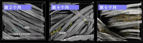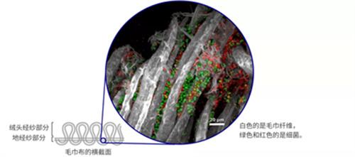 在用過的毛巾當(dāng)中放大500倍之后,發(fā)現(xiàn)毛巾纖維里面能夠看到許多細(xì)菌。在用了幾個(gè)月之后細(xì)菌會成為連在一起的生物膜,等于細(xì)菌,在毛巾當(dāng)中安家,著時(shí)間的推移,細(xì)菌的生物膜越來越厚,這時(shí)摸到毛巾,手感會有點(diǎn)黏黏滑滑的,沒有清爽的感覺。