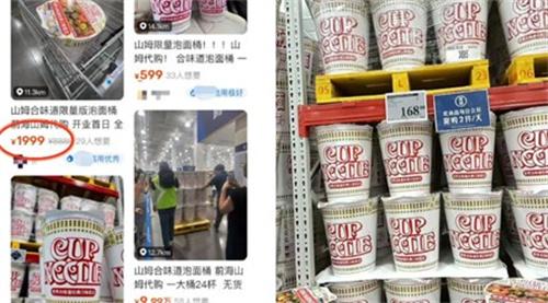 7月2日一則報道顯示山姆旗艦店現只售買一款合味道泡面桶,這個泡面桶造型極為夸張,高度達45cm,總售價為168元,二手平臺上這一個泡面桶被炒的價格達到了1999元。有不少消費者表示自己想要這個泡面桶,在二手交易平臺之上,本身售價168元的泡面,結果被炒到了500~800不等的價格。
