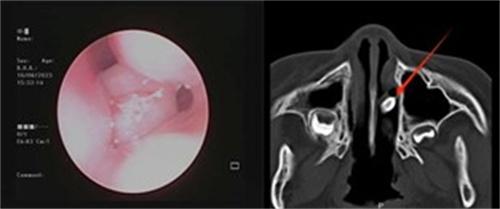 接診的李圓副主任經過仔細檢查,發現小朋友出現鼻塞的原因,并不是普通的鼻炎導致的,于是做了鼻腔內鏡的檢查,看見左鼻通道內有粘稠的膿性鼻涕,用吸引器將鼻涕吸走之后發現中后段有黃豆大小的新生物,為了確定物質的性質,李圓也讓患兒做了鼻腔內部的CT