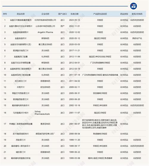 在22款抗抑郁創新類藥物當中,其中21款藥物都是進口的藥物產品,市場規模需求較為龐大的情況之下,國內的各大藥企也在分別布局在抗抑郁創新藥方面的研發。抗抑郁藥物的整個市場主要是跨國藥物企業占據主導地位。