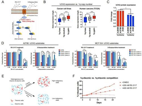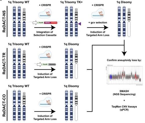 研究團隊靶向了胃癌黑色素瘤卵巢細胞中非整倍體,在這些不同類型癌癥早期這一階段所出現的異常常見的染色體是1號染色體,出現了第3份的拷貝,于是就利用基因編輯類工具加癌細胞中1號的染色體,額外拷貝進行切除。