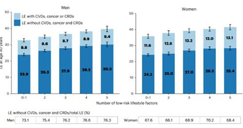 2023年7月10號北京大學李立明,呂筠等人在Nature Human Behaviour雜志上發布了一篇最新的研究論文。該篇論文就分析了5個不同的健康生活方式,將會對于中國人壽命的影響,根據論文描述只要遵循積極運動、健康飲食,不吸煙、不過度飲酒、健康的體脂不管男性壽命或者女性壽命都會有不同年限的延長。