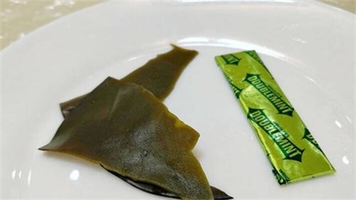 海帶的外形是一個長長的帶子,看起來比較薄,呈現(xiàn)褐色,顏色會暗一些,在海中會有海帶柄這些結(jié)構(gòu)去固定物體,海帶餅并沒有分枝,連接著海帶片和固定器,中間并不分裂。裙帶菜和它的名字一樣,是非常像裙帶的,所有稱之為裙帶菜,整個顏色偏向翠綠,長度大約只有兩厘米左右,通常更為厚實一些,吃起來會有更好的口感。