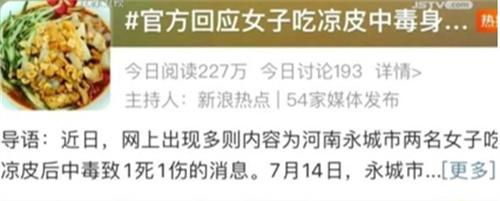 有消息稱河南永城有一女子吃涼皮后中毒死亡,醫生認為是米酵菌酸引起的。目前事情還正在調查過程當中,這種毒素利用沸水也難以燒死,在中毒后甚至病死率超過了50%。