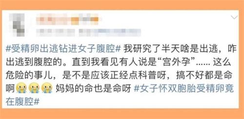 武漢有一中年女子意外懷上雙胞胎,但讓人感覺到驚奇的是,受精卵竟然不在子宮里而,鉆進了腹腔最終在直腸上安家了。這種極為罕見的腹腔妊娠很容易引發大出血,對母嬰的性命都有所危及,必須盡快利用手術將妊娠終止。