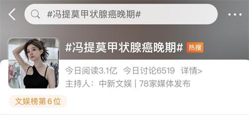 在最近的采訪中,知名的網紅的馮提莫也提到自己將近半年時間停播,是因為罹患了甲狀腺癌晚期,目前已經做完了手術恢復也比較好。發文提醒到女孩子們,在生活當中一定不要精神內耗。