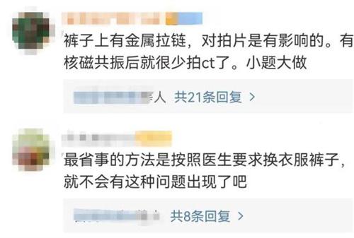 回家后陳女士覺得很不對(duì)勁,問了眾多的醫(yī)生朋友,以及拍攝過這個(gè)部位片子的朋友表示拍攝這個(gè)片子并不需要將內(nèi)褲露出來,程女士局的自身隱私被侵犯。于是向有關(guān)部門作出投訴,瑞安市衛(wèi)生健康局作出回復(fù),患者拍攝骨盆正位片子的時(shí)候,肚臍或骨盆下如果存在金屬物品,拉鏈等對(duì)CT結(jié)果的準(zhǔn)確性有影響,一般情況下會(huì)要求患者將金屬物品的遮擋去除。對(duì)于患者隱私保護(hù)這一層面醫(yī)院當(dāng)中已經(jīng)加強(qiáng)了宣傳和教育,建議去更換醫(yī)院專用的衣服,拍攝減少隱私部位造成的暴露。