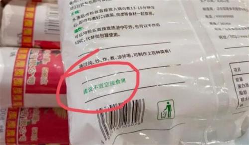 吃了這么久的粉絲,近日有網友發現龍口粉絲上寫著不宜空腹食用,記者走訪線下超市后,發現大部分售賣龍口粉絲的包裝袋上確實印有不宜空腹服用這樣的標識。因為龍口粉絲比較方便購買,儲存也簡單,并且并不含脂肪,也被大多數人當做減肥時期的一種主食,卻忽略了其不宜空腹使用這一特點。