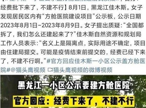 近日,黑龍江佳木斯要建方艙醫院的消息引發了網友們的熱議。根據相關公示信息,佳木斯前進區計劃建立方艙醫院,這一消息引起了眾人的討論質疑。網友表示建防疫設施,竟然等到疫情過后才將所有的審批程序走完,對當地在執行效率方面有了很大的質疑,即便疫情已經過去了,仍然要將那些過審批的防疫設施建設,這也讓大家對當地執行力有些擔憂。