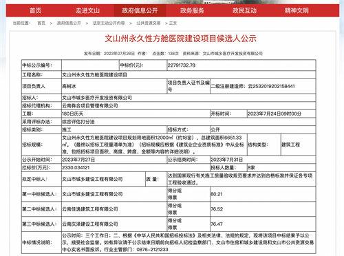 根據信息顯示這一項目,所中標的是文山市城鄉建設工程有限公司,實際的控制人是文山市財政局,文山市自然資源局的工作人員表示對修建永久性方艙醫院這件事情具體進展不了解。自然資源局,只負責對地質的考察,配合做其中的一部分工作。