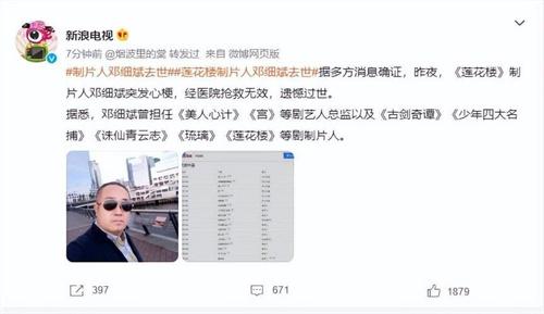 近日,意外知名的制作人鄧細斌突發心梗,在醫院搶救無效后僅僅51歲就去世了,曾經做過《美人心計》、《宮》電視劇的藝人總監。作為制片人的新劇《蓮花樓》也正在平臺熱播當中,不少網友對這一消息十分惋惜。
