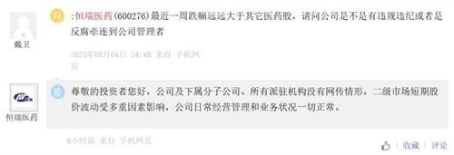 現在股價在短期內大幅度的下降,恒瑞醫藥在互動平臺也作出了回應稱,并沒有網絡所傳言的傾向,經營管理及業務方面都是一切正常的,但是恒瑞醫藥正面作出的回應,對于公司股價持續下跌,最終造成的效果也微乎其微。