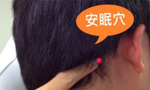 1.安眠穴的穴位位于人體耳朵的后方,將小拇指放在耳垂下方五指并攏,中指能夠指到的地方就是安眠穴,這個(gè)穴位是翳風(fēng)穴和風(fēng)池穴連線的中點(diǎn)位置。