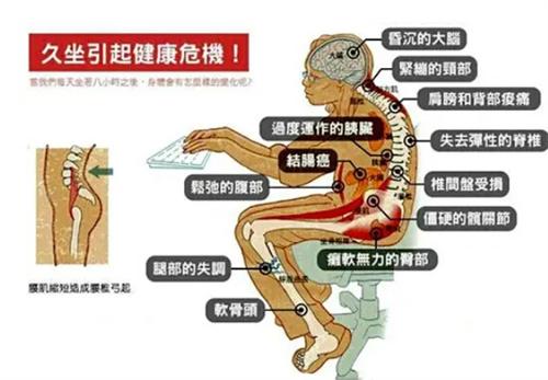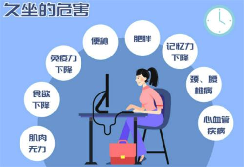 6.現在的成年人每天坐著上班學習,每天都會久坐很長時間,身體的關節就像生銹的機器一樣僵硬,久坐不僅會傷膝蓋,甚至從頭到腳都會受到傷害。