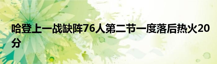 導讀 哈登上一戰(zhàn)缺陣,76人第二節(jié)一度落后熱火20分,全隊所有人的助攻數(shù)都不超過3次,恩比德22分2助獨木難支,全隊進攻艱難滯澀。 此役第三節(jié)