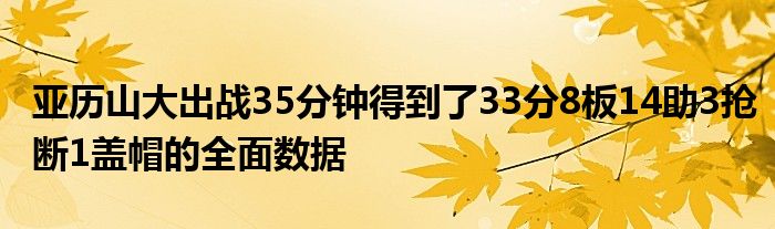 亞歷山大出戰35分鐘得到了33分8板14助3搶斷1蓋帽的全面數據