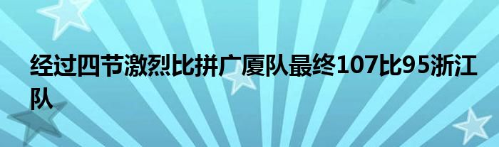 CBA第32輪,上演浙江德比戰,經過四節激烈比拼,廣廈隊最終107-95浙江隊。這場比賽堪稱慘烈,浙江隊主教練和總經理均被驅逐,吳前 膝蓋被撞傷一瘸一拐帶傷拼到第四節。每節比分:27-26、29-23、22-18、29-28(廣廈隊在前)。