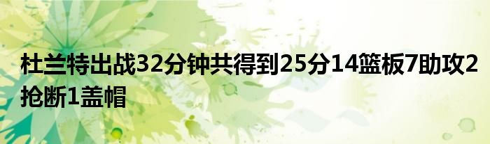 杜蘭特出戰32分鐘共得到25分14籃板7助攻2搶斷1蓋帽