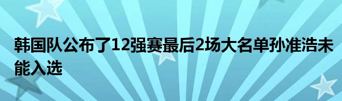 韓國隊公布了12強賽最后2場大名單孫準浩未能入選