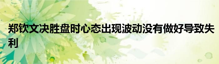 鄭欽文決勝盤(pán)時(shí)心態(tài)出現(xiàn)波動(dòng)沒(méi)有做好導(dǎo)致失利