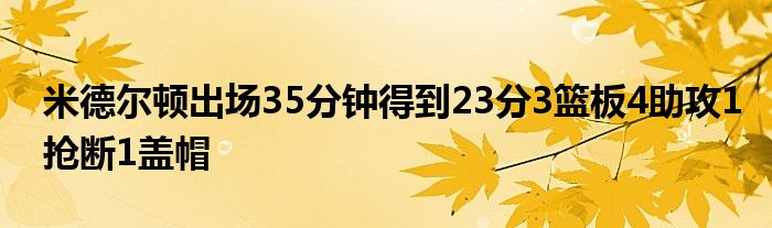 米德爾頓出場35分鐘得到23分3籃板4助攻1搶斷1蓋帽