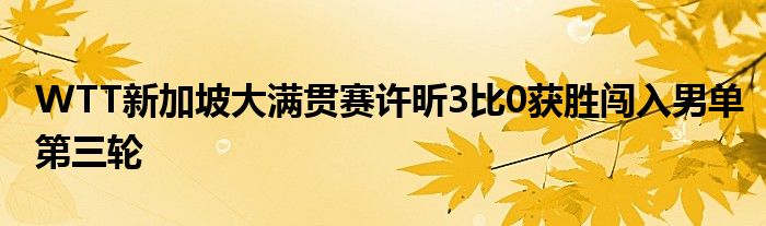 WTT新加坡大滿貫賽許昕3比0獲勝闖入男單第三輪