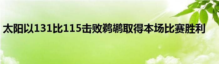 太陽客場對陣鵜鶘。最終太陽以131-115擊敗鵜鶘。