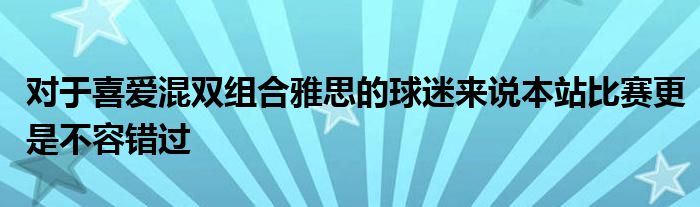 今晨,“雅思組合”首輪迎戰法國組合維利格/特蘭,兩人苦戰三局艱難過關。對于喜歡“雅思”的球迷來說,這次的全英賽只能且看且珍惜。