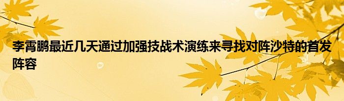 據《北京青年報》報道,李霄鵬最近幾天通過加強技戰術演練來尋找對陣沙特的首發陣容,硬度、節奏、定位球成為備戰期間的3個關鍵詞。