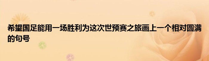 希望國足能用一場勝利,為這次世預賽之旅畫上一個相對圓滿的句號。