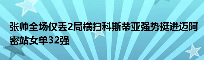 張帥53分鐘速勝、全場僅丟2局橫掃科斯蒂亞強勢挺進邁阿密站女單32強