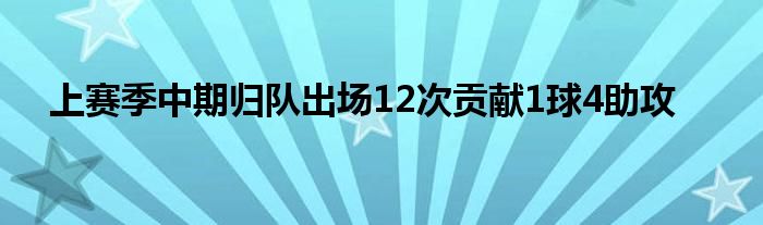 上賽季中期歸隊出場12次貢獻1球4助攻
