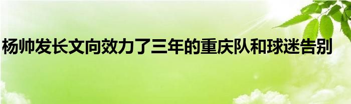 3月30日晚上,重慶兩江競技隊(duì)長楊帥通過個(gè)人微博發(fā)長文,向效力了三年的重慶隊(duì)和球迷告別。