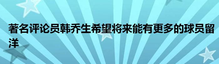 4月1日,著名評論員韓喬生在個人微博發聲,談到中國留洋球員現狀,并呼吁希望將來能有更多的球員留洋。