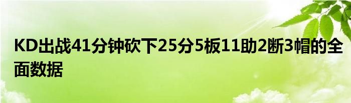 今日KD出戰41分鐘,16投9中,三分2中1,罰球6中6,砍下25分5板11助2斷3帽的全面數據。