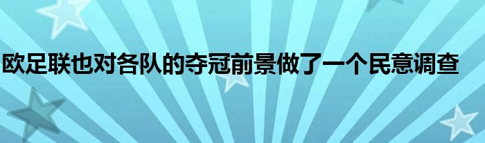 半決賽對陣形勢出爐后,歐足聯也對各隊的奪冠前景做了一個民意調查。