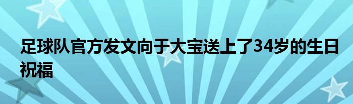 4月18日是國腳于大寶的生日,中國足球隊官方發文,向于大寶送上了34歲的生日祝福。