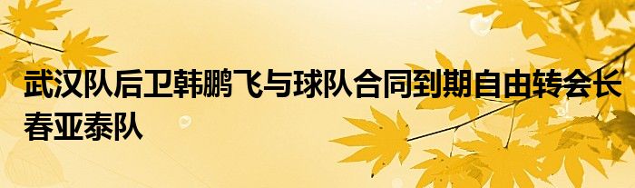4月20日, 據德國轉會市場中國區管理員朱藝的消息,武漢隊后衛韓鵬飛與球隊合同到期,自由轉會長春亞泰隊。