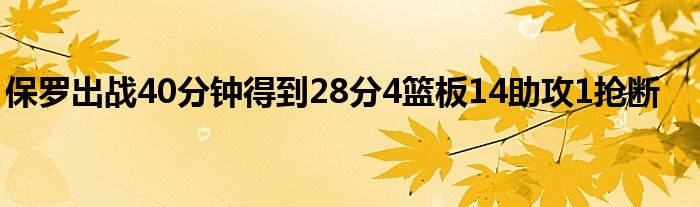 本場(chǎng)比賽保羅出戰(zhàn)40分鐘,投籃18中10,三分6中1,罰球8中7,得到28分4籃板14助攻1搶斷。