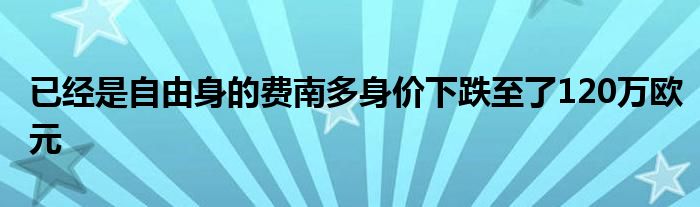 此外,已經是自由身的費南多身價下跌至了120萬歐元;同樣也是自由身的阿蘭,身價下跌至了80萬歐元。