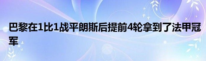 本輪法甲,巴黎在1比1戰平朗斯后,提前4輪拿到了法甲冠軍,這是俱樂部歷史上的第10個法甲冠軍,10年來的第8個法甲冠軍。