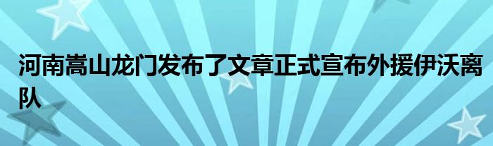 4月28日,河南嵩山龍門在俱樂部官方微博上發布了文章,正式宣布外援伊沃離隊。