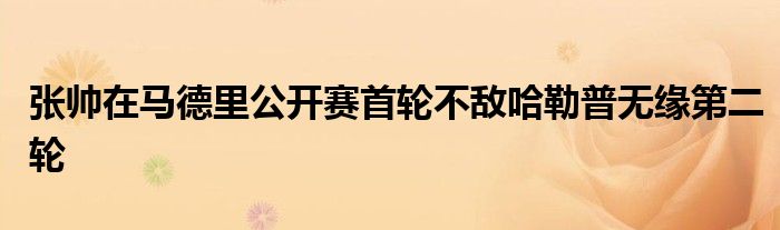 中國金花張帥當地時間28日在馬德里公開賽首輪不敵兩屆賽會冠軍哈勒普,無緣第二輪。賽后張帥表示,自己紅土不如硬地打得自如,會調整好心態,每天會去全力訓練。