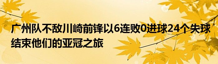 4月30日,亞冠小組賽I組末輪,廣州隊0-1不敵川崎前鋒以6連敗0進球24個失球結束他們的亞冠之旅。