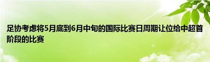 5月4日, 據(jù)《北京青年報(bào)》報(bào)道,中國(guó)足協(xié)已經(jīng)考慮將5月底到6月中旬的國(guó)際比賽日周期讓位給中超首階段的比賽。