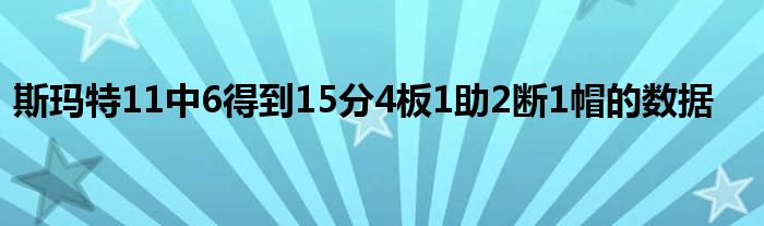 全場比賽,斯瑪特11中6,三分球5中3,得到15分4板1助2斷1帽的數據。